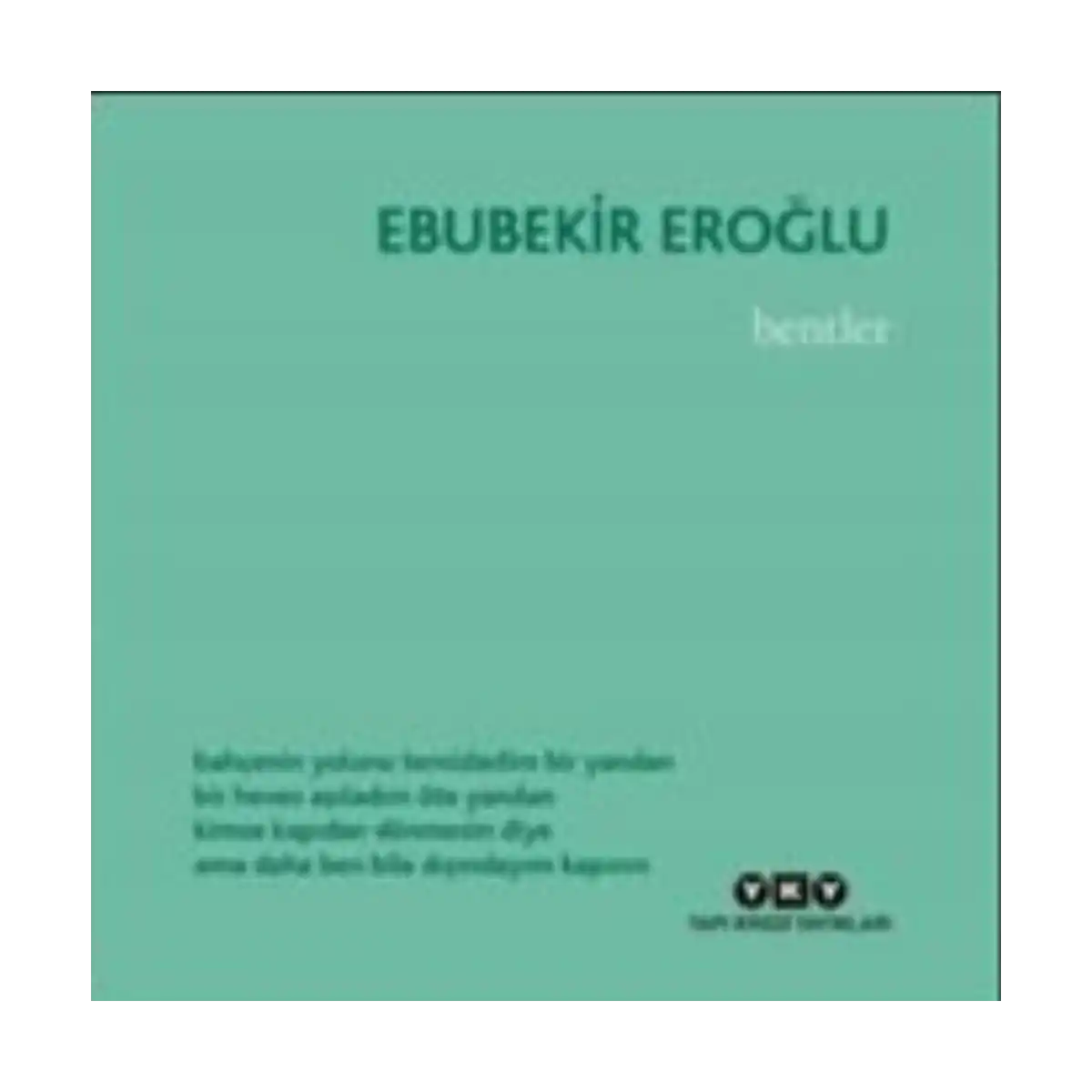 Ebubekir Eroğlu’nun yeni şiir kitabı Bentler bahçenin yolunu temizledim bir yandan bir heves aşıladım öte yandan kimse kapıdan dönmesin diye ama daha ben bile dışındayım kapının 2016’da Necip Fazıl Şiir Ödülü alan Ebubekir Eroğlu’nun yeni şiir kitabı Bentler Yapı Kredi Yayınları tarafından yayımlandı. Ebubekir Eroğlu’nun sekizinci şiir kitabı Bentler’de geçen yıl çıkan İçkale adlı kitabı tamamlayan nitelikte 66 parça şiirden oluşuyor. Tanıtım Metni