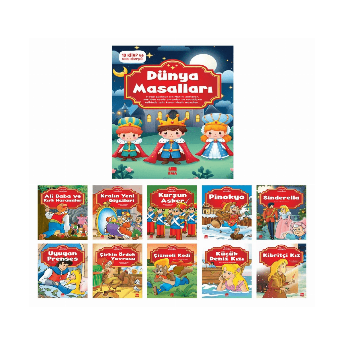Dünya Masalları Seti – 10 Kitap Takım Küçük Boy 1.Sınıf Hikaye – Ema Çocuk Yayınları