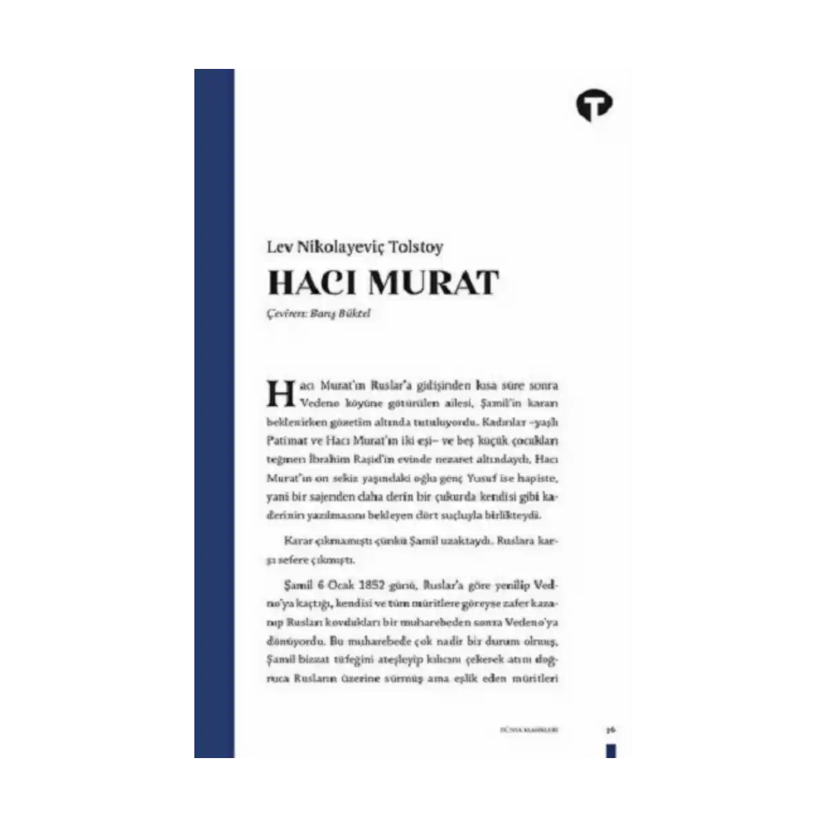 Tolstoy’un derin insanlık analizleri, savaşın yıkıcı etkileri ve etik değerlerin sorgulanması gibi temaların işlendiği, Kafkasya’da Çeçenistan-Dağıstan bölgesinde efsaneleşmiş bir savaşçının hikâyesi olan Hacı Murat, Şeyh Şamil-Hacı Murat çekişmesini ve bu çekişme sırasında zarar gören Kafkas halkının dramını gözler önüne seriyor.