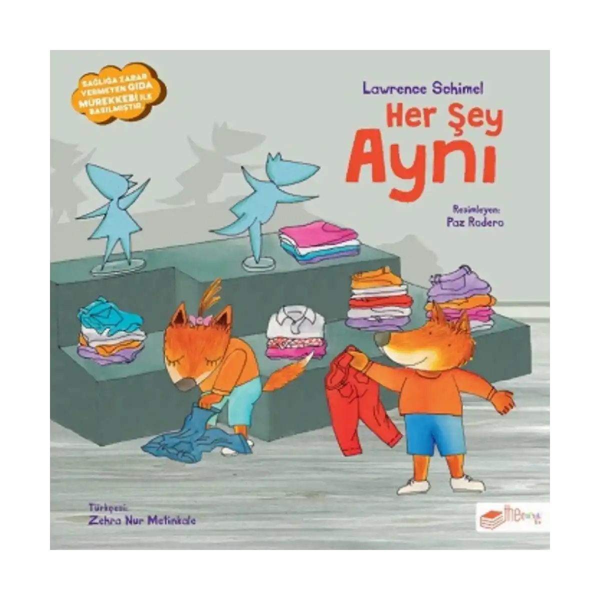 Ama biri sarı diğeri kırmızı renkte giyinmek istiyor. O zaman aynı şeylere nasıl sahip olacaklar? Nasıl bir çözüme kavuşur dersiniz? Her Şey Aynı; kardeşlik ve uzlaşma kavramlarını ele alan, ana ve ara renkleri öğretmeyi sağlayan sıcak bir hikâye