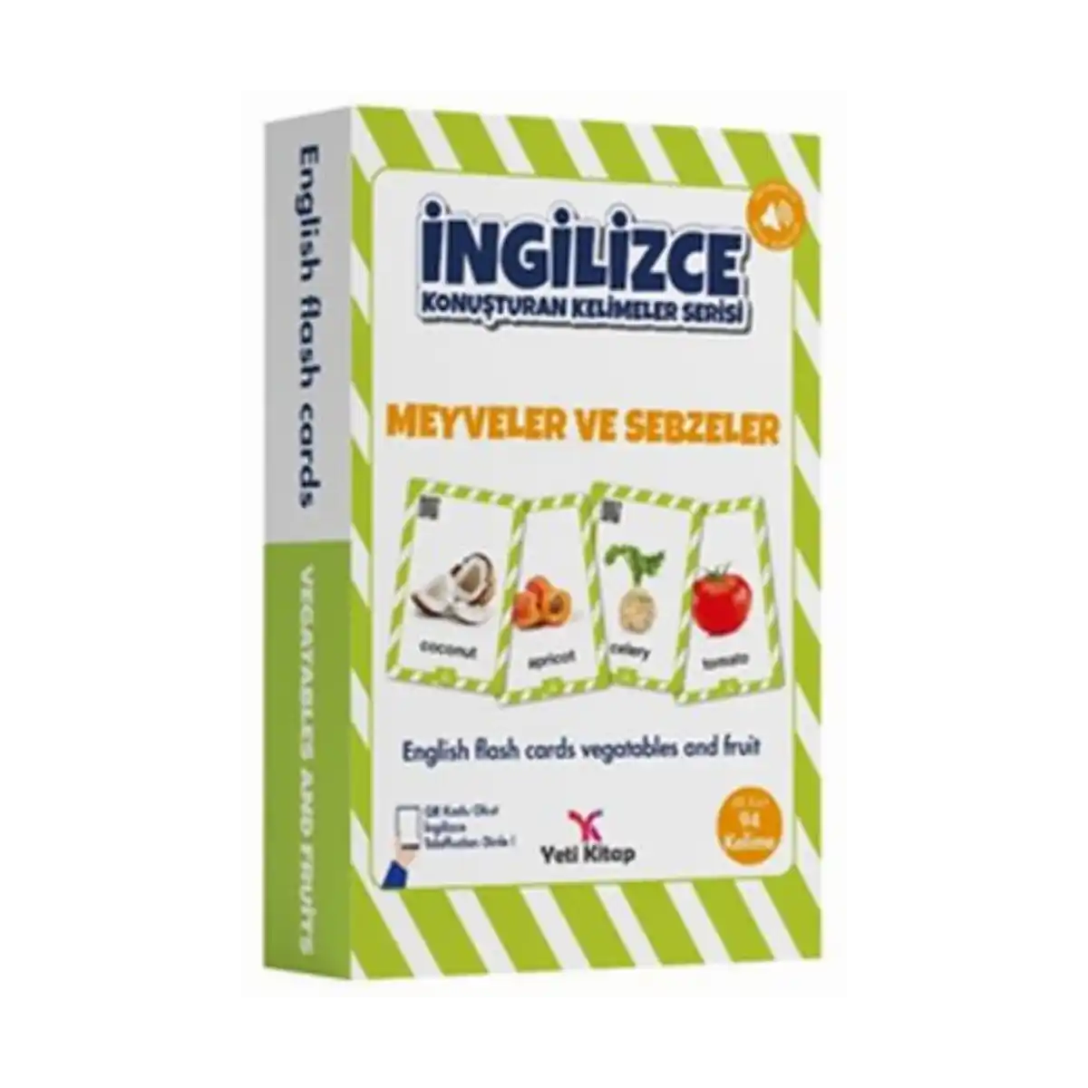 The most fun way of learning English! Vocabulary Cards… Aim of these cards is to teach everyone wants the most basic words and concepts in English with an enjoyable method. It consists of 96 cards. Scan the QR code at the back of the book to practice and listen the English pronunciations.