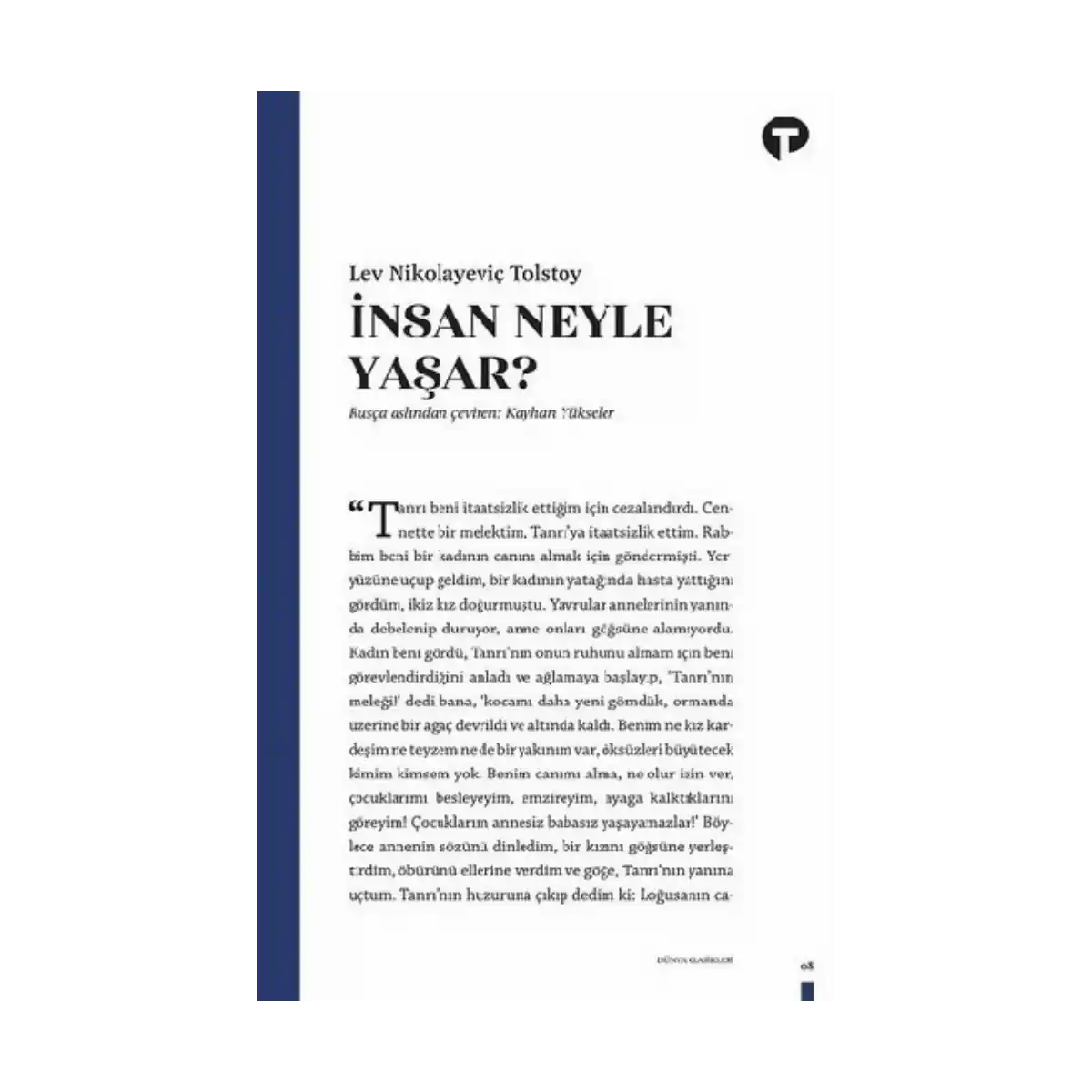 Lev Tolstoy, İnsan Neyle Yaşar?’daki hikayelerde, dünya malı uğruna kardeşlerine sırt çevirenlere, hırsına yenik düşenlere, kanaat etmeyi bilmeyenlere sevginin, iyiliğin, hakikatin gücünü hatırlatıyor.