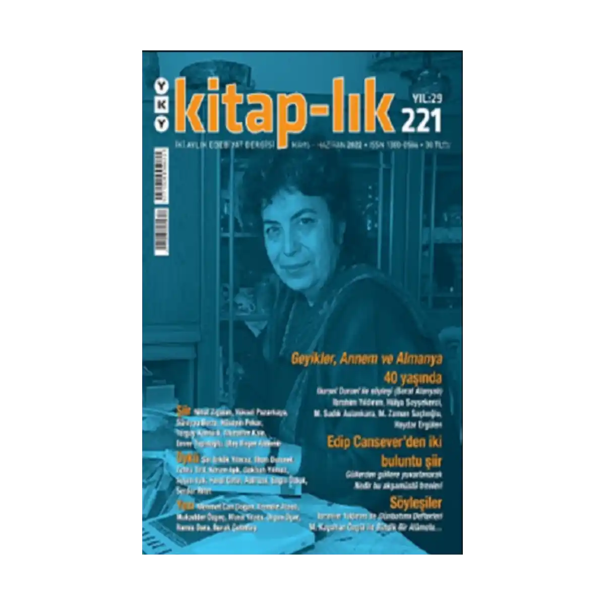 Nihat Ziyalan, Yüksel Pazarkaya, Süreyya Berfe, Hüseyin Peker, Turgay Kantürk, Muzaffer Kale, Enver Topaloğlu ve Ulaş Bager Aldemir şiirleri; Şiir Erkök Yılmaz, İlhan Durusel, Zehra Tırıl, Kerem Işık, Gökhan Yılmaz, Ayşen Işık, Ferdi Çetin, Adil İzci, Engin Özkol ve Serdar Rifat öyküleri; Mehmet Can Doğan, Erendiz Atasü, Mukadder Özgeç, Musa Yazıcı, Orçun Üçer, Ramis Dara, Burak Çetintaş yazılarıyla kitap-lık dergisinin 221. sayısında.