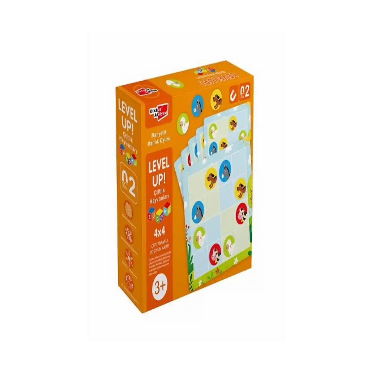 4×4 manyetik çiftlik hayvanları sudoku oyunu kolay, orta ve zor seviyelerden oluşur.