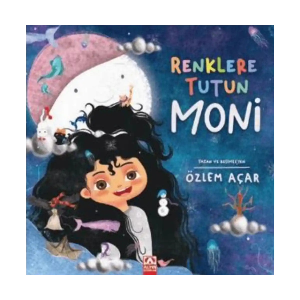 Moni’nin uzun zamandır beklediği kar nihayet yağmıştır. Ama bu kez özlemle beklediği o bembeyaz kar ilk kez Moni’yi mutlu etmez. Hastalandığı için sokağa çıkamayan küçük kız penceresinden mutsuz mutsuz bakarken bir dilek tutar. Dilekler bazen renkten renge dönüşür, bazen de bir bulutun kollarında gökteki Ay ile arkadaş olur. Paylaştıkça büyüyen, sevdikçe mutluluk veren, düşledikçe renklenen günler belki de Moni’yi kar tanelerini taşıyacaktır. Düşlerin sonsuz renginde uçuşan sıcacık bir masal…