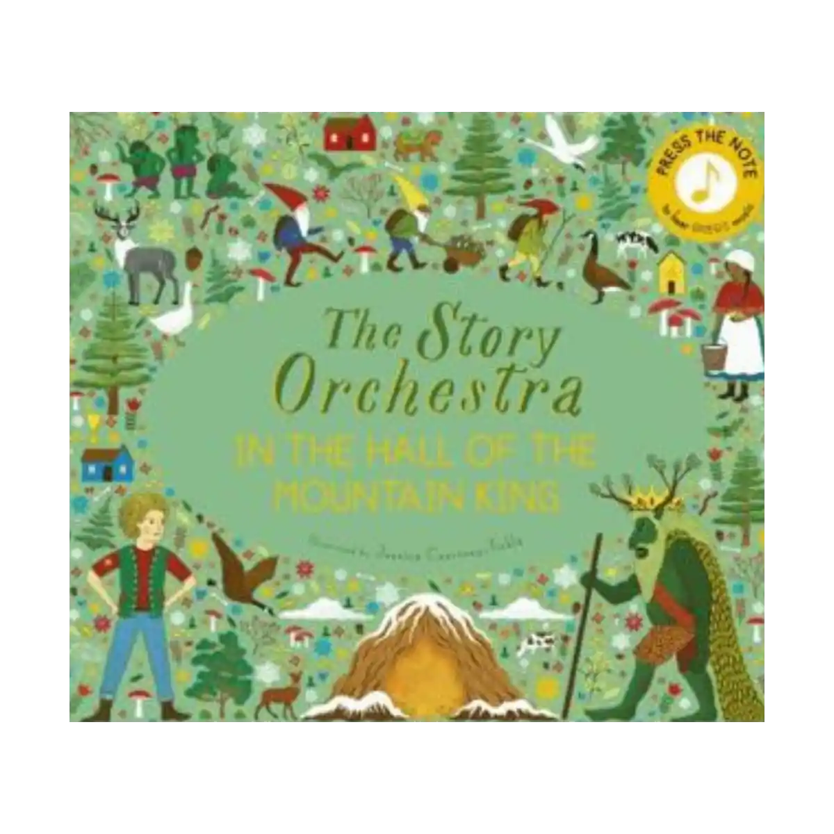 Discover the spellbinding magic of The Mountain King in this musical retelling of Peer Gynt – push the button on each beautiful scene to hear the vivid sound of an orchestra playing from Grieg’s score. This tale of a boy’s adventure through the valleys and mountains of the Norwegian countryside begins at a wedding feast far, far away. Peer Gynt is bored and he’s longing for adventure. After sneaking off from the party he finds himself at a peaceful lake where he meets some dairy people. When he lies about his escapades riding reindeers through the sky, they dare him to go to the lair of the Mountain King, the king of the trolls. The king’s halls are dark and spooky, and it isn’t long before Peer is captured. How will he escape? And will he learn the importance of humility and the value of friends? As you and your little one journey through the magical scenes, you will press the buttons to hear 10 excerpts from the score. Readers should press firmly on the pages to activate the sounds, encouraging interactive learning and introducing children to this beautiful piece of music.
