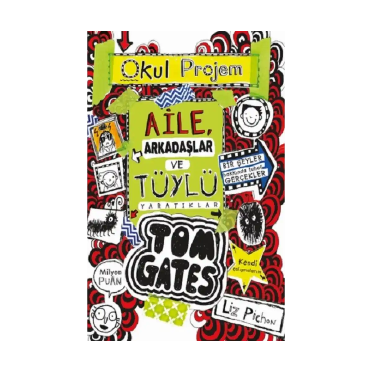 Dikkat et Tom! Casuslar ensende olabilir! İngiliz yazar ve çizer Liz Pichon’ın, 43 ayrı dile çevrilen ve milyonlarca okura ulaşan “Tom Gates” serisi, 12. halkası Aile, Arkadaşlar ve Tüylü Yaratıklar ile yine kahkahayı garantiliyor. Şaşırtıcı yetenekleriyle her kitabında çocuklara bambaşka bir serüven yaşatan Tom, bu kez bir dedektif titizliğiyle aile ağacının izini sürüyor ve hiç bilmediği sırlar keşfediyor! Başta “Roald Dahl En Komik Kitap Ödülü” olmak üzere pek çok ‘gülücüklü’ ödülle yıldızı devamlı parlayan “Tom Gates” kitapları; kendine has esprileri, matrak tiplemeleri, eğlenceli çizim etkinlikleri ve oyun sayfalarıyla çocukları kitapların dünyasına yaklaştırıyor. Derek’in haşarı köpeği Gıtgıt, Tom’un eşofmanını tüy içinde bırakınca kahramanımızın aklına parlak bir fikir geliyor: Kendi tüylü yaratıklarını yaratmak! Birkaç parça yapışkanlı bant ve tüyün (aşırı tüy de olabilir…) bu kadar kullanışlı olacağını başka kim düşünebilirdi ki zaten? Meşelik Okulu’nda curcuna devam ederken Tom istemediği şeylerin bir listesini tutmaya karar veriyor. GACIIRRT! Amanın, bu ses de nesi?! Evet, Tom gacırdıyor hem de fena hâlde! Birileri Tom’un ayaklarından yükselen bu utanç verici sese son vermeli, ama nasıl? Bu arada, Bay Bilgili’nin verdiği proje ödevi dostumuzu bir hayli zorlayacağa benziyor. Nitekim 5F sınıfı haldır haldır bebeklik fotoğraflarını toparlayıp aile ağaçlarını hazırlamakla meşgulken, Tom bir türlü ödevine odaklanamıyor. Kim bilir, belki de ailesine dair bazı gerçeklerle yüzleşmeye hazır değildir. Mesela, şu pek tanımadığı casuslarla (tamam, fazla ipucu yok!). Yaratıcı etkinlik sayfalarıyla okurlarını kitapla daha da bütünleştiren Tom Gates, bu serüveninde yine akıllara durgunluk verecek TÜYLÜTEŞEM buluşlar geliştirmekten geri kalmıyor. Okuma güçlüğü çeken çocukları kitapların renkli dünyasıyla buluşturan “Tom Gates” serisi, hayatı göründüğünden çok daha eğlenceli, okumayı ise tahmin edildiğinden çok daha kolay kılarak önemli bir sorumluluk üstleniyor.